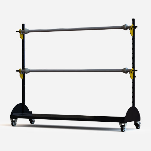 - Aufnahme von 2-3 Rollen: 2 Rollen können variabel mittels Steckachse positioniert werden, im unteren Bereich lässt sich eine 3. Rolle zusätzlich lagern -