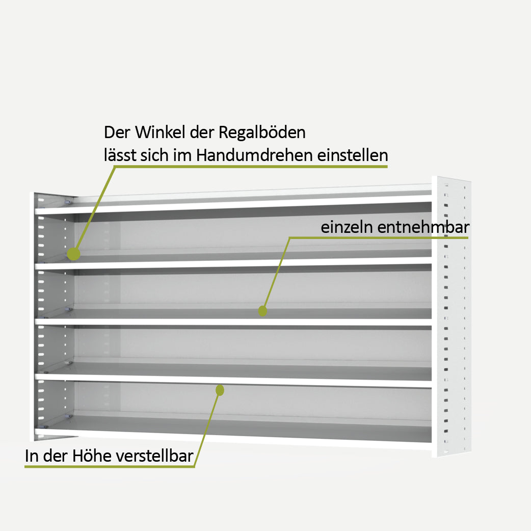 -Ergonomische Entnahmemöglichkeit durch variabel einstellbare Fachböden -