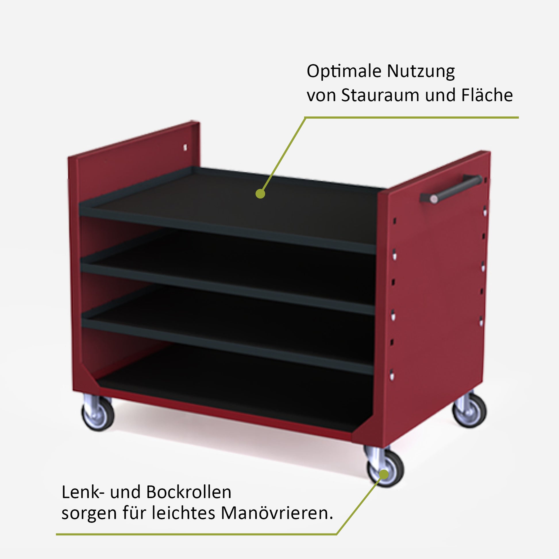 -Schafft als eigenständiges mobiles Regal oder als Einschub im Regallager Ordnung und Übersichtlichkeit