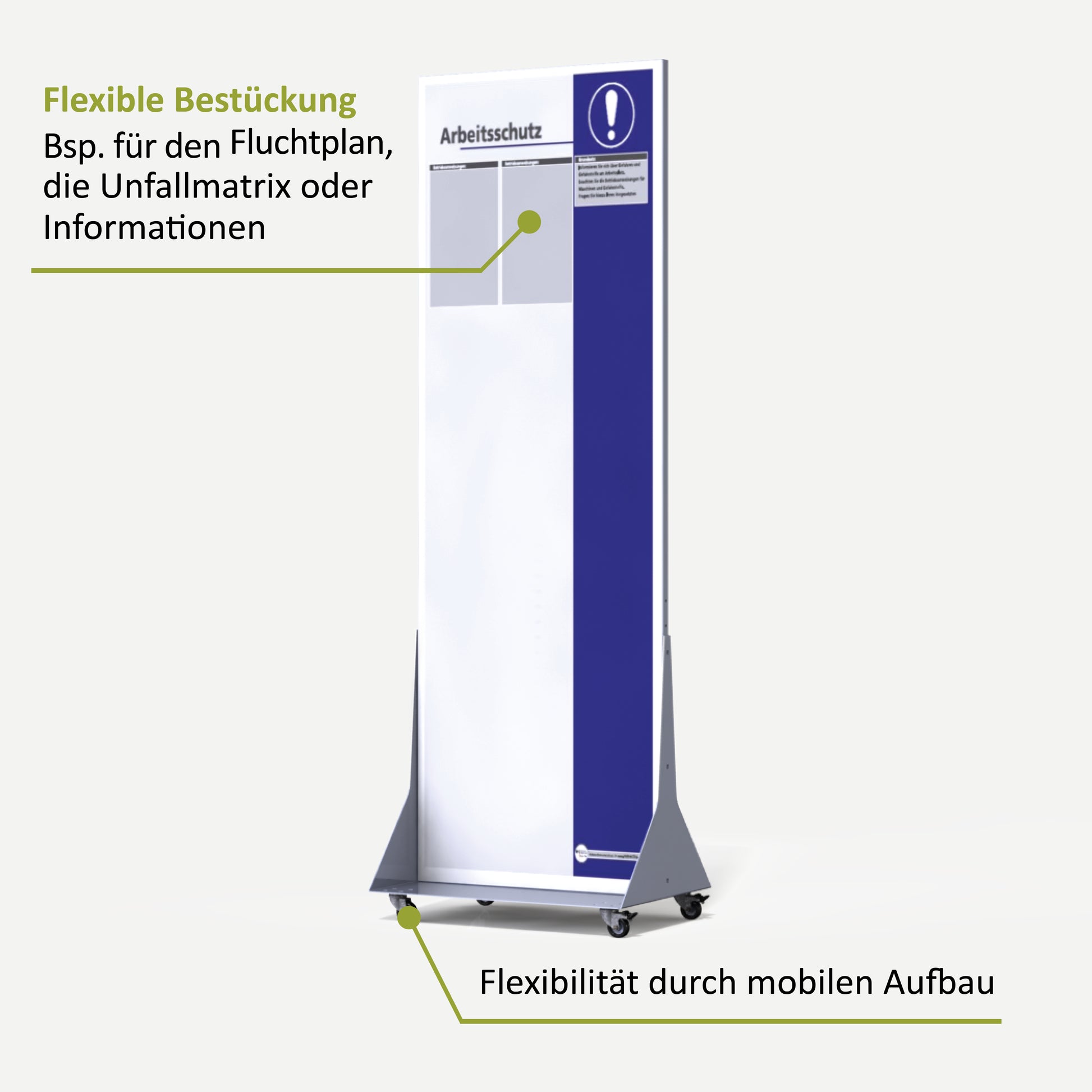 -Zweiseitig bestückbar, z.B. jeweils eine Seite für Brandschutz und Erste Hilfe