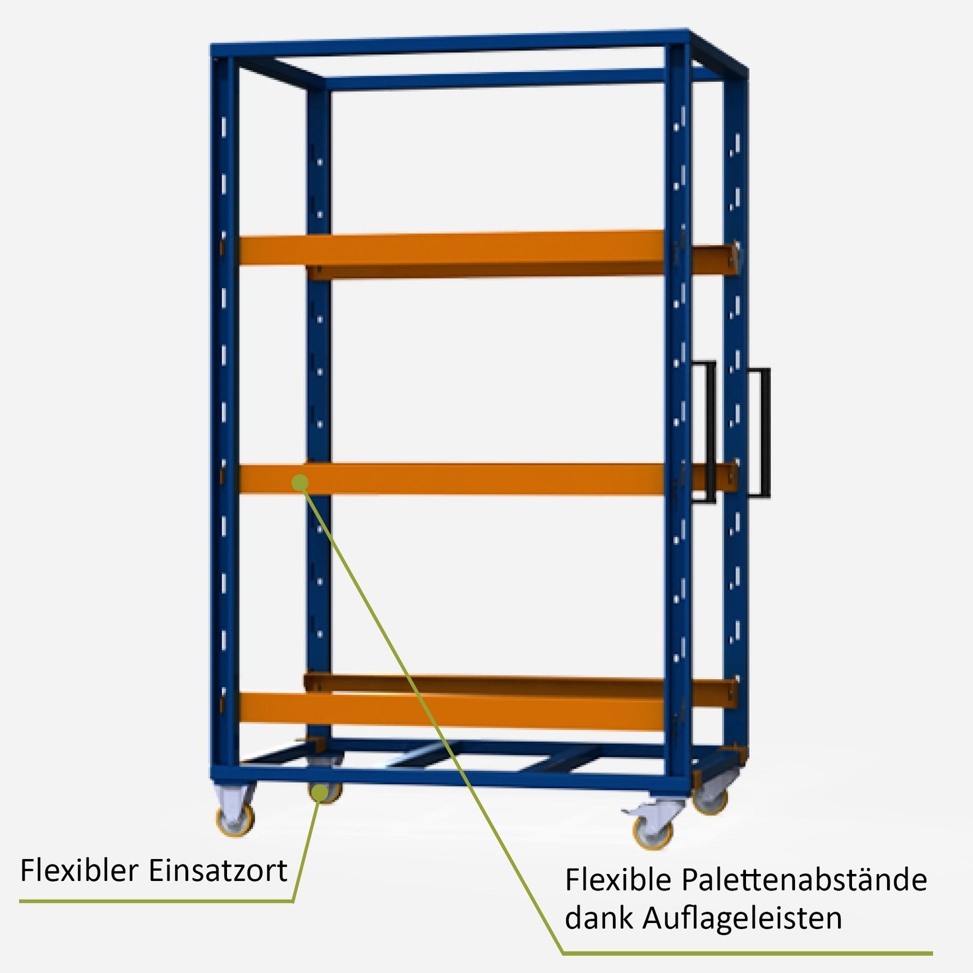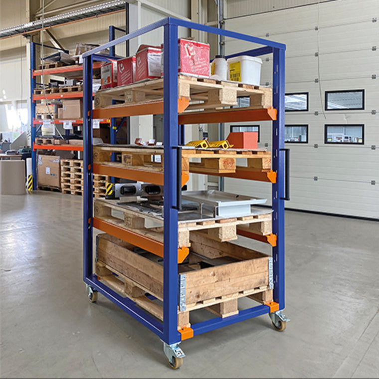 -Die Lenk- und Bockrollen gewährleisten das einfache Manövrieren des Wagens durch die Produktion oder sogar für den Transport in den LKW